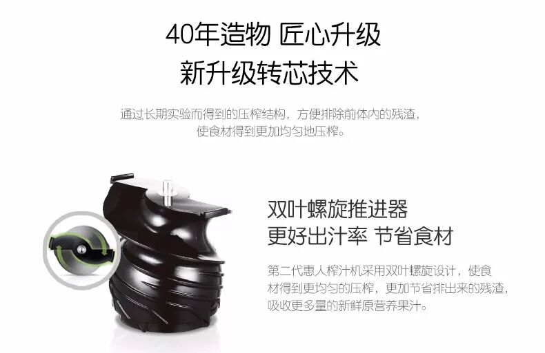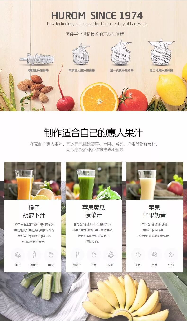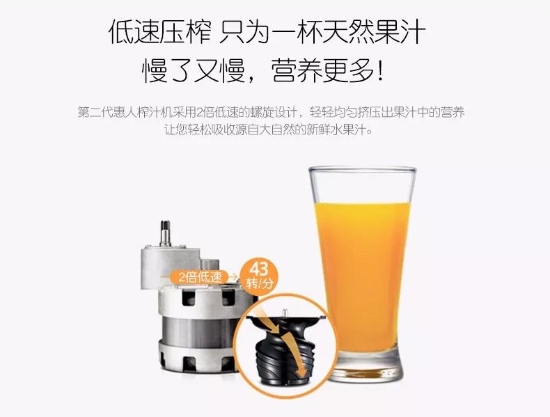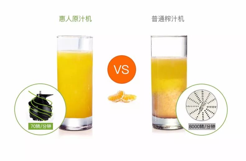 相比传统榨汁机,惠人出汁时提高30%,果汁更好喝营养不流失。