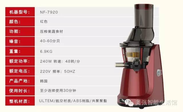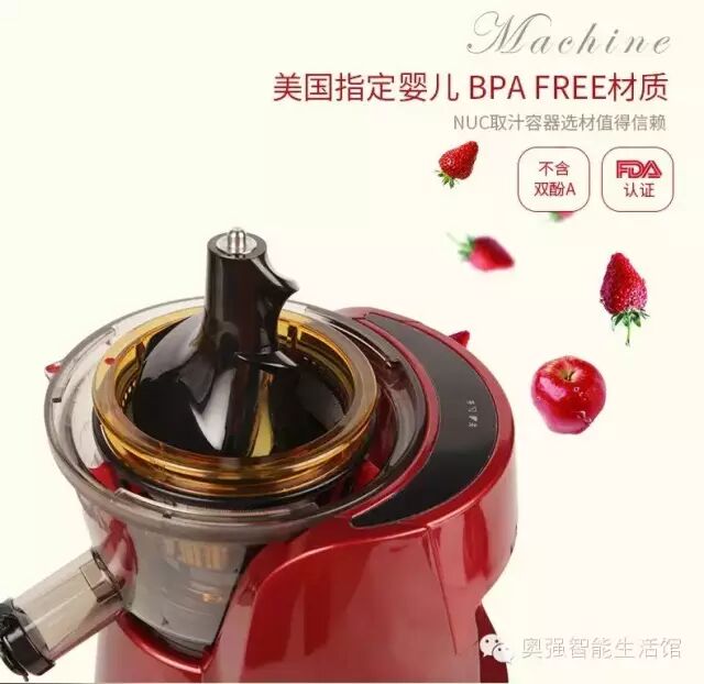 NUC原汁机采用慢速挤压的原理 共聚聚酯铸造和制定BPA FREE材质最大程度的保留了果汁的原汁原味