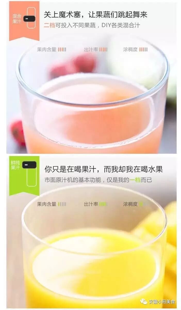 所谓原汁机,就是一边出汁一边出渣,但这一款可谓是全球唯一一台可以做果肉果汁的原汁机,有来它,再也不用担心浪费果渣了,再也不用再外面买果粒橙喝了~当然,它不仅可以做果肉果汁[出汁率高,富含果汁,口感丰富]还可以做混合果汁[果蔬混合,营养丰富,]鲜纯果汁[口感细腻,新鲜纯粹]三档可调。