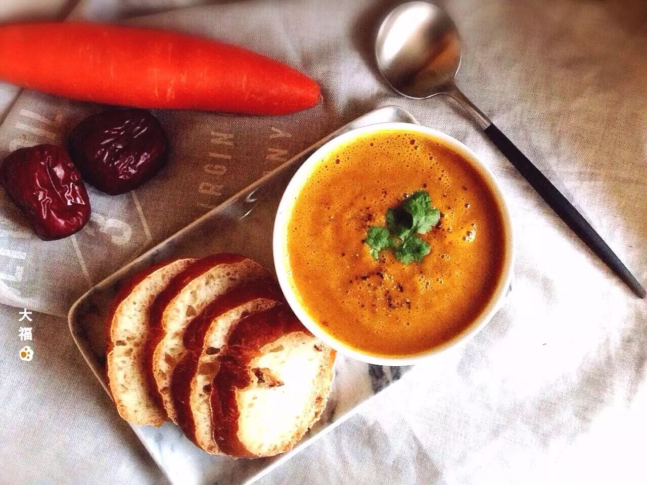 图为厨友@北京大福 用九阳破壁调理机JYL-Y8 PLUS做的姜味烤胡萝卜浓汤