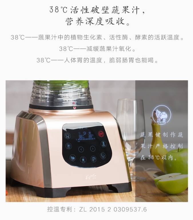 祈和破壁料理机设置的“蔬果键”是根据吴永志博士的疗效性食谱而设计,打出来的蔬果汁是温热的,38℃,称为“活性蔬果汁”,适合人体肠胃的同等温度。