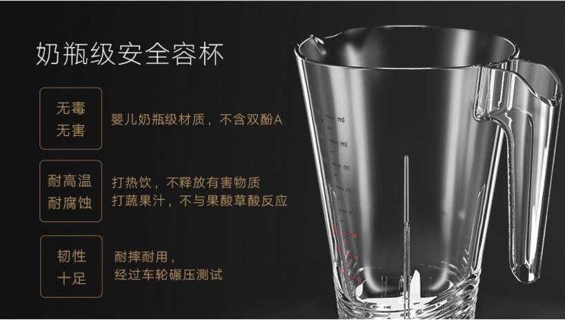 最重要的料理杯的用料,你一定要擦亮眼选择不含双酚A的才行。双酚A会导致内分泌失调,威胁胎儿和儿童的健康。癌症和新陈代谢紊乱导致的肥胖也被认为与此有关。欧盟认为含双酚A的奶瓶会诱发性早熟,所以从2011年开始就禁止生产含双酚A的婴儿奶瓶。这一点一定要注意,千万选择料理杯不含双酚A材质的。