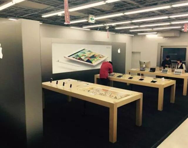 像我们的苏宁国美一样,也是会在一层有一个苹果体验店,日本的苹果手机是会便宜一些,不过照相机的声音是关不掉的。