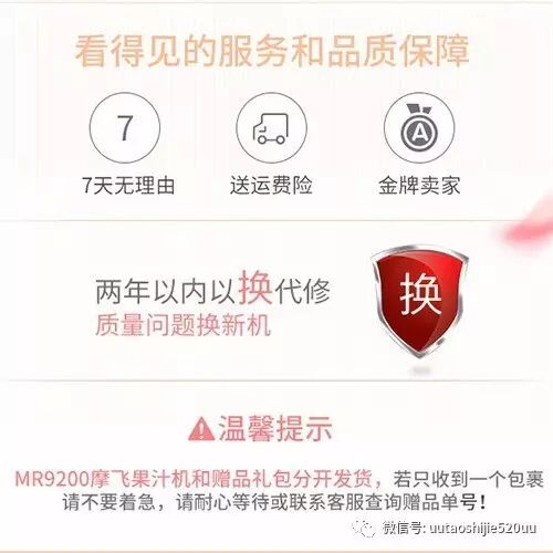 【温馨提示】摩飞果汁机和赠品礼包分开发货,若收到一个包裹请不要着急,请耐心等待或联系客服查询赠品单号!