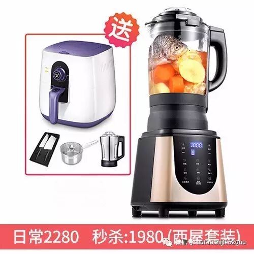 4、西屋套装秒杀价:1980(空气炸锅+干磨杯+刀具套装+锅具)