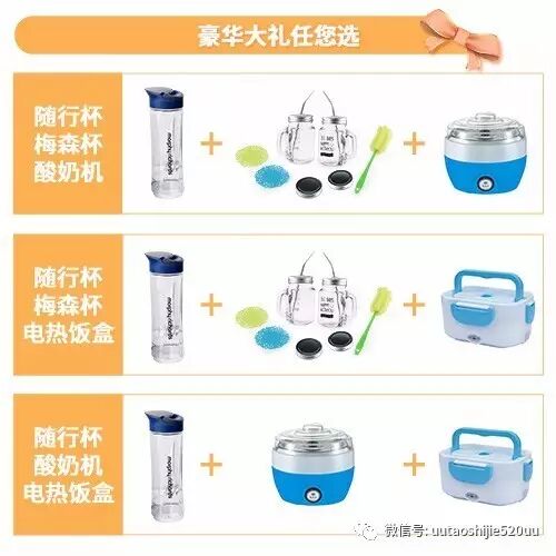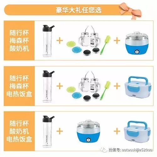 赠品三选二(梅森杯套装;电子饭盒;酸奶机)