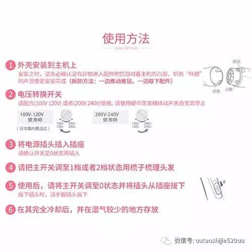 2.在使用中梳子后面部分会发烫,在使用中注意不要烫伤