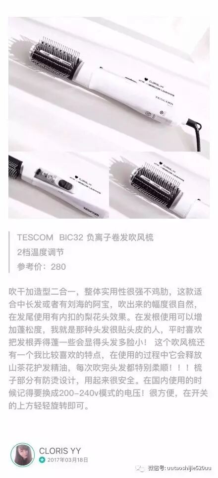 4.日本TESCOM BIC32 直发电卷发负离子电吹风机 保湿造型梳子不伤发