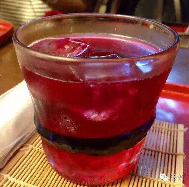 5、喝的时候,加上冰块,喜欢酸点的再加点柠檬汁,喜欢甜的可以再加点糖,总之味道自己来调节就可以.清凉可口,散热解暑,还有紫苏特有的香气哦。