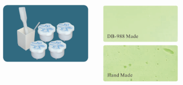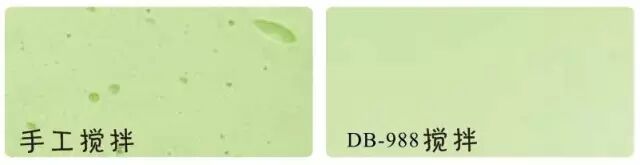图为:左边DB-988搅拌和右边手工搅拌对比