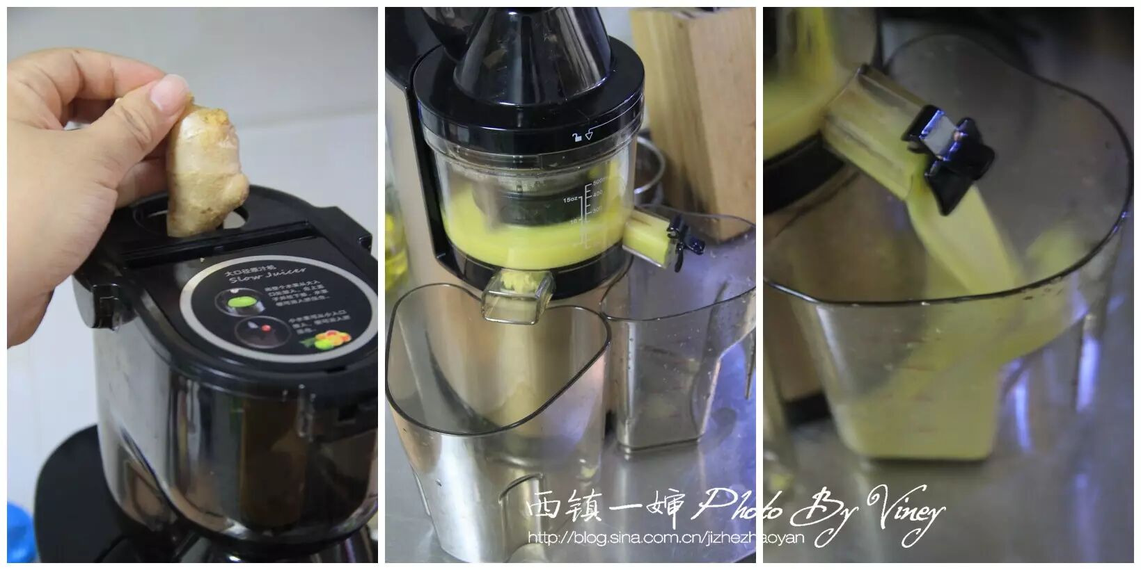 1、因为要取新鲜的生姜汁用,所以我直接用原汁机榨汁方便一些。没有的,可以用那种榨汁器或者搅拌机打碎后碾压出汁。