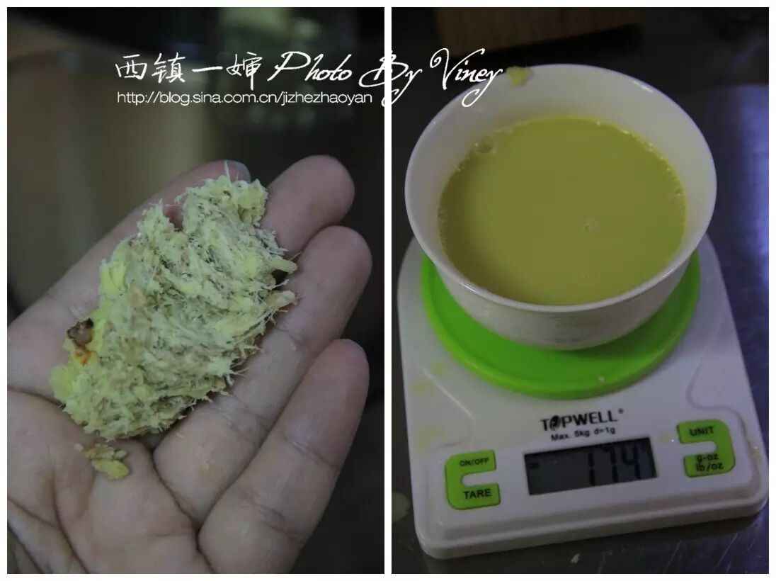 3、看一下出姜汁的过程,酱汁是嫩黄色的,味道很大。