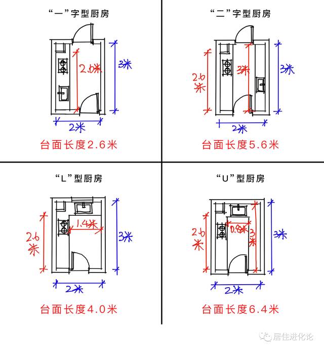 把四种主流厨房布置上去做对比