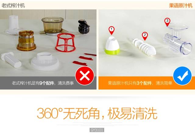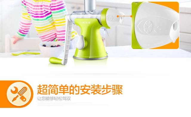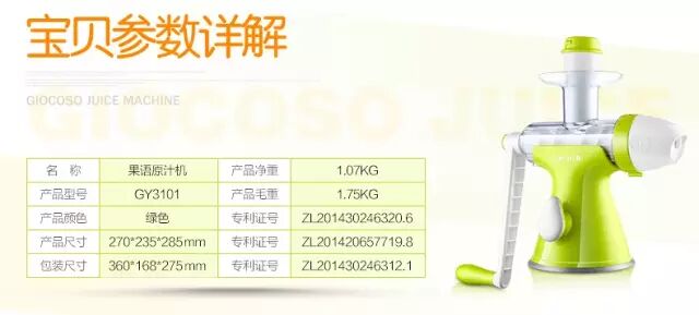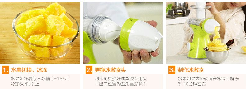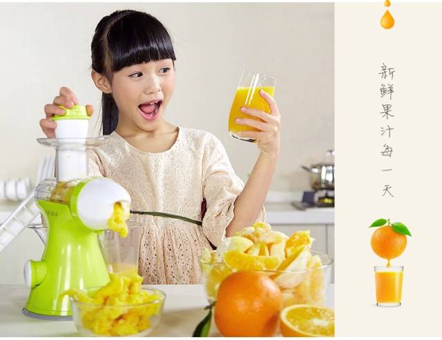 榨汁机清洗好麻烦!榨果汁好浪费!如何让孩子爱上喝果汁?果语儿童原汁机,专为孩子和妈妈研发的果汁机。他不用电、易操作孩子能够自己动手做果汁所以更爱喝果汁;前出渣后出汁回流的果汁好喝无渣滓;无虑网、易清洗妈妈好轻松。更换一个冰淇淋专用头就能做水果冰淇淋,一机两用孩子更开心!