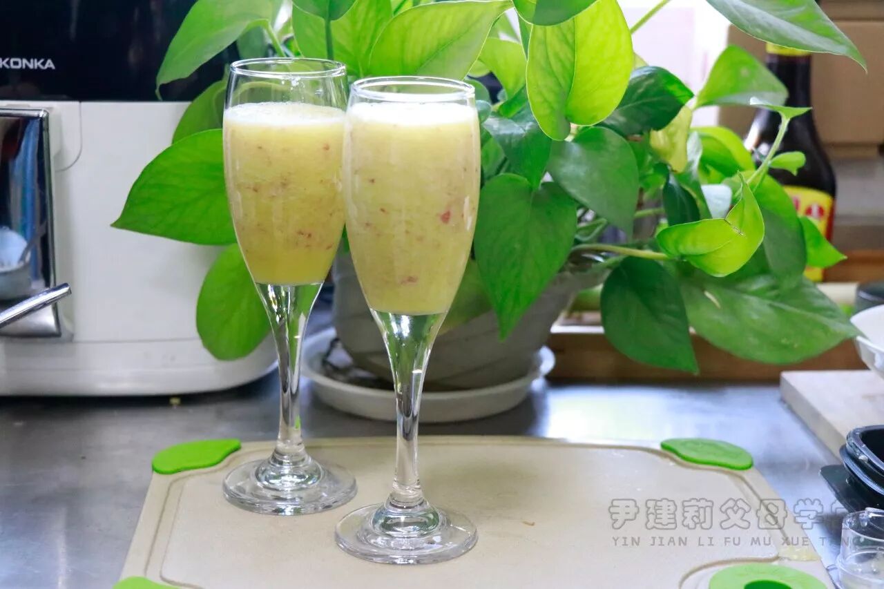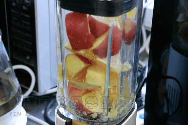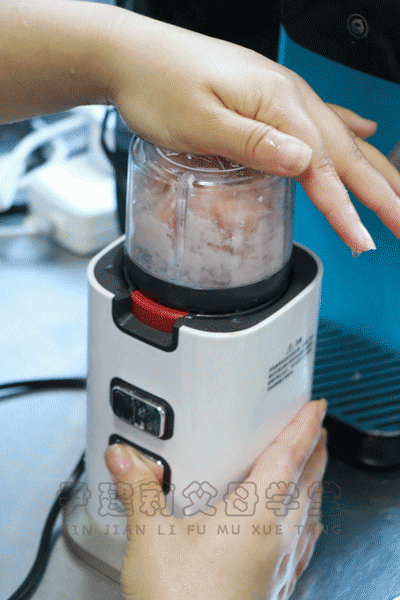 温馨提示:如果想让宝宝吃果泥,可以少放点水甚至不放水,如果想让宝宝喝果汁,凉白开可以多放点。
