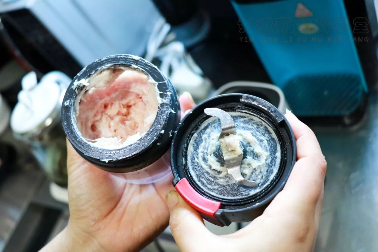 注意:一次只能放60g左右,最好不要超量,两个档位要5秒钟更换一次。仅需要30秒就能交出非常细腻的肉泥。一斤肉,最多也就需要10分钟即可,完全比自己剁馅快捷多了。