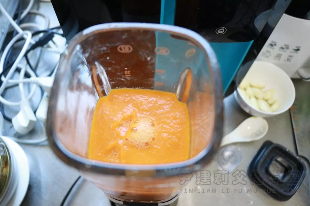 堂妹太懒,没有将橙子表面的经络剥干净,所以出来的果汁渣感比较明显,宝妈在制作果泥或者果汁时记得注意啦,尽量将水果的表皮剥离干净,这样打出来的果汁会更细腻哦。
