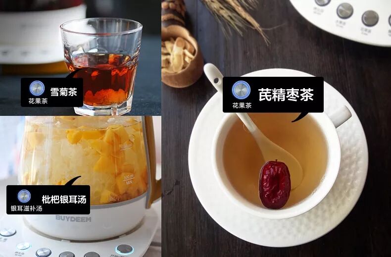 北鼎K106还有煮花果茶的功能。姐妹们可以根据季节的变化煮花草茶或水果茶。如果你自己是一个爱享受生活的人,你可以用北鼎养生壶煮各种水果茶,金桔柠檬、苹果蜜桃、缤纷百香果等统统可以自己动手,你也可以尽情发挥创意,选择自己喜欢的水果,闲暇时光煮上一壶,慢慢品尝。