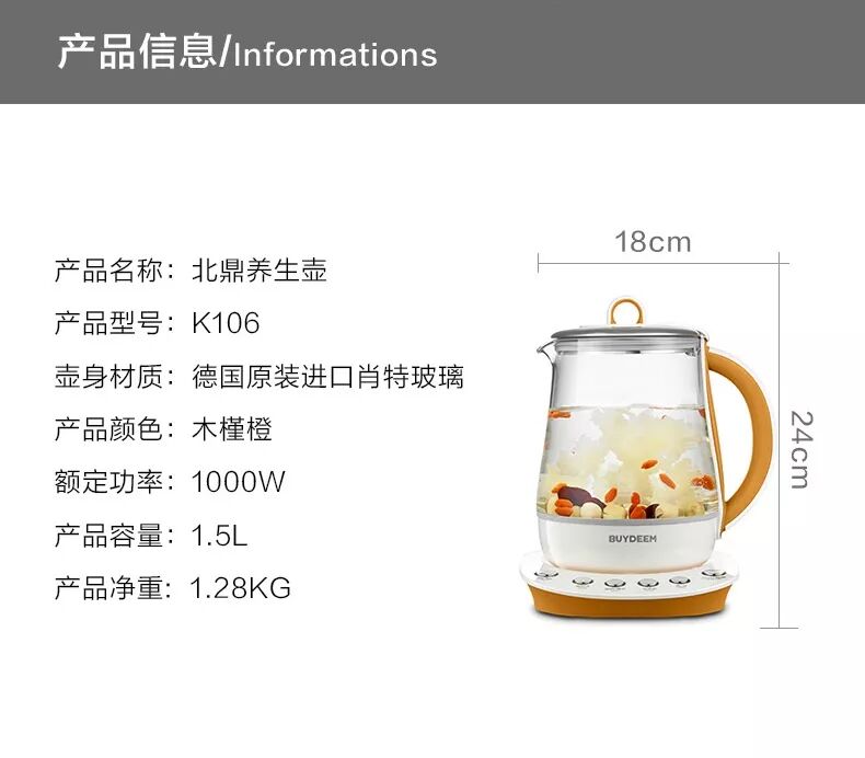 团购产品:北鼎养生壶(赠:随身杯*1,料包礼盒*1,除垢剂*1)