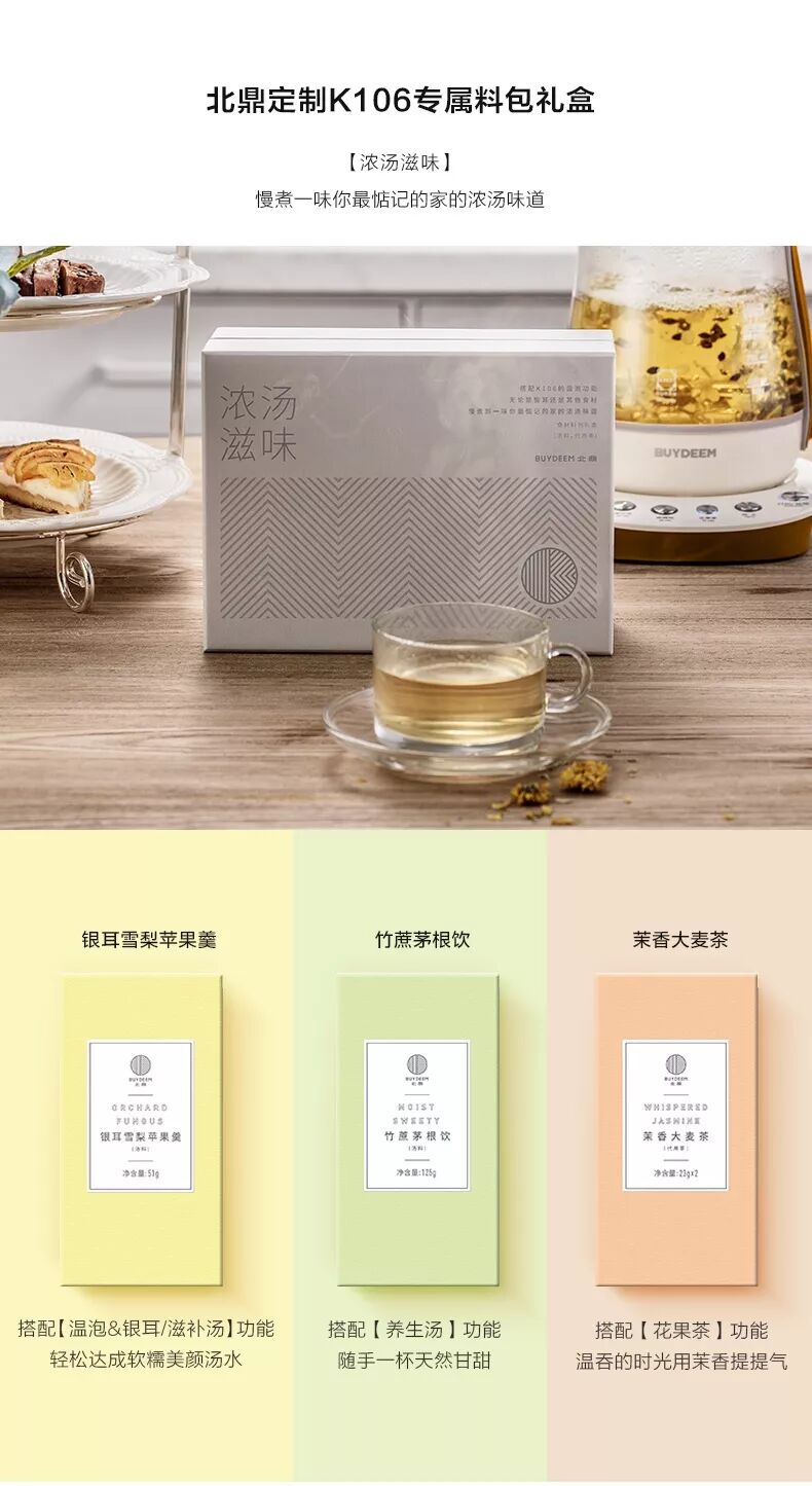 自从用上了老公的爱心牌养生壶,煲汤时间大大缩短,搭配了北鼎家现成的料包煮出来的饮品又好喝又营养。坚持了一段时间,我的气色明显改善了很多!