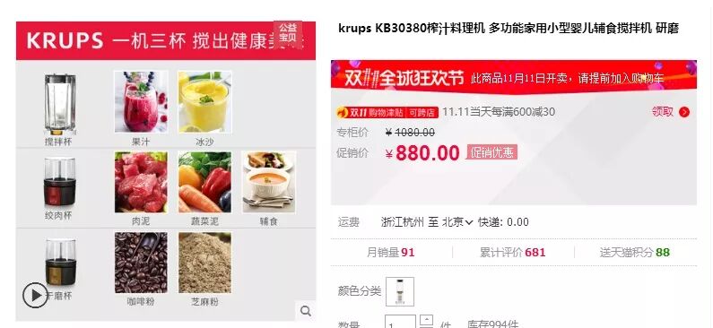 我们先来看看天猫旗舰店的价格,880元,比那些破壁机的价格美丽多了。