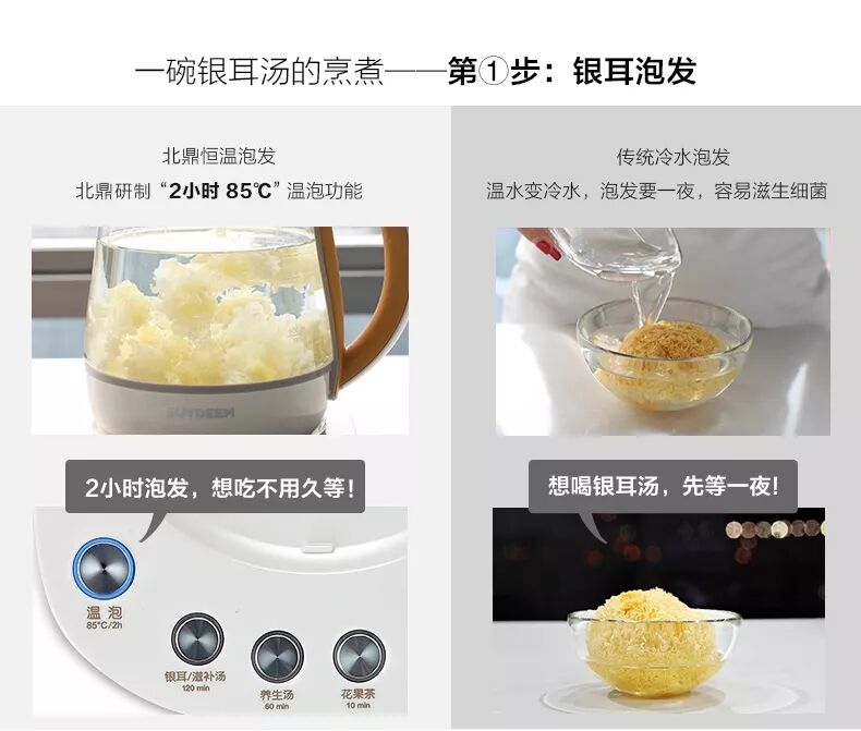 一、 独特的85度恒温泡发,让食材最大程度的释放营养
