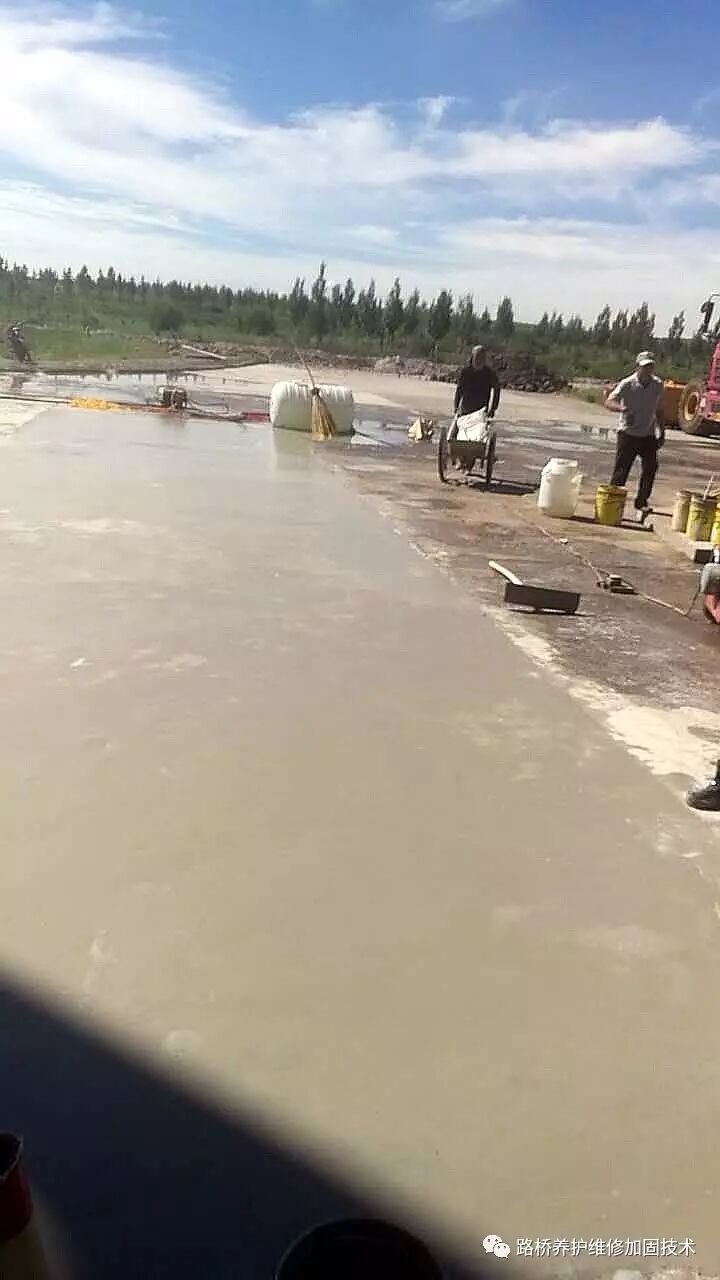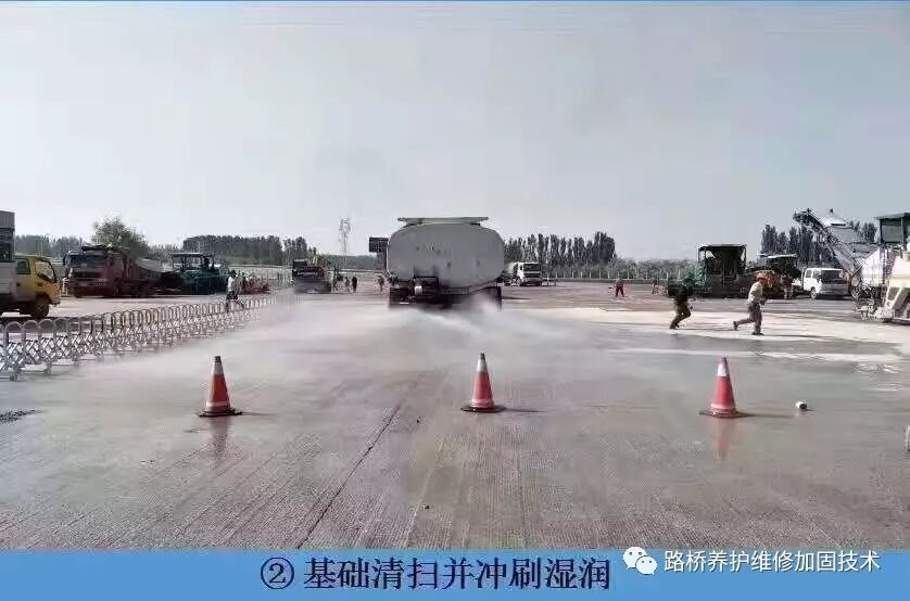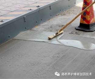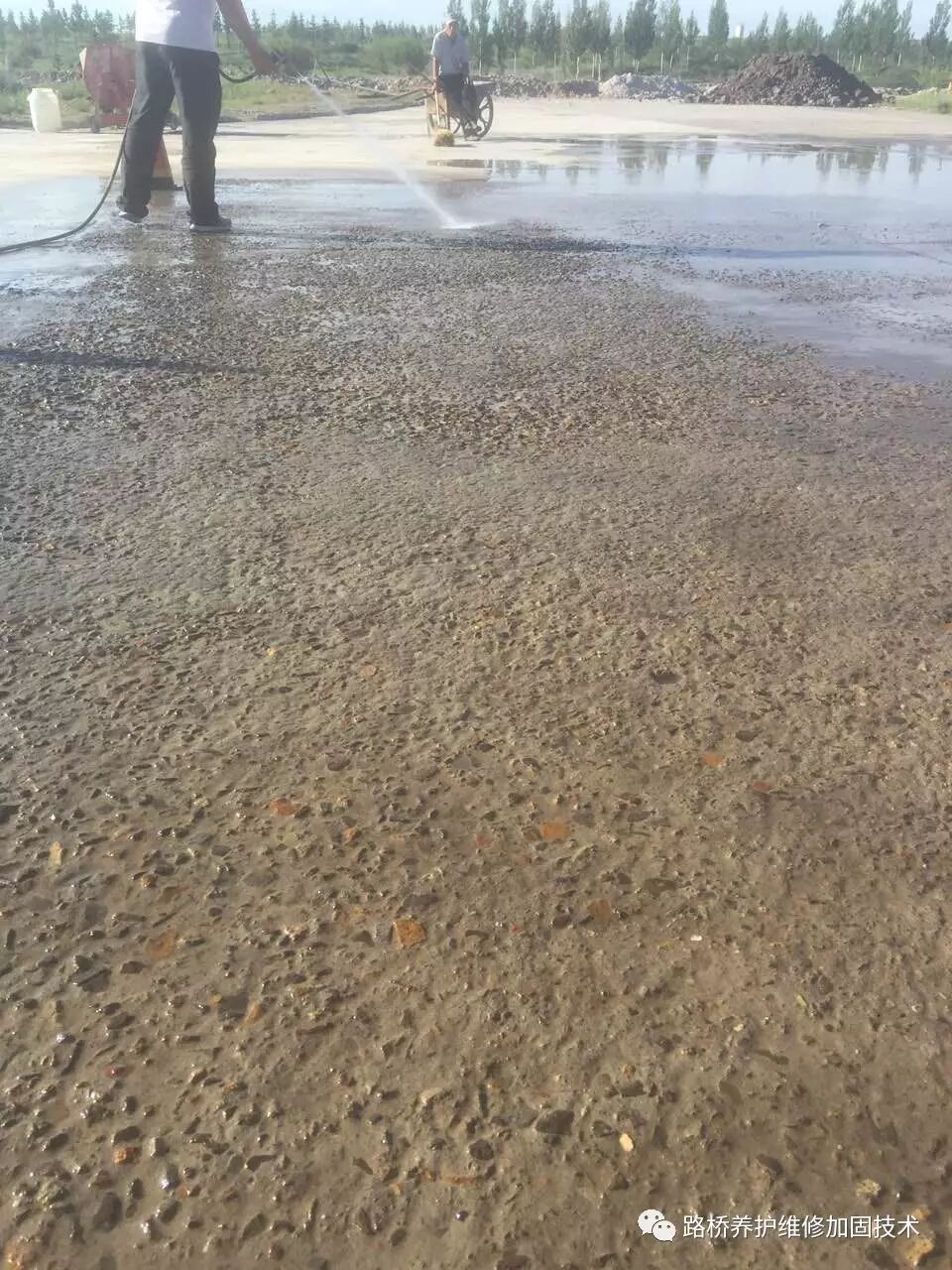 为了增强修补层与路面的粘结力,应在铺设修补层之前对待修区表面进行施水,使混凝土表面处于饱和而无明水的状态。
