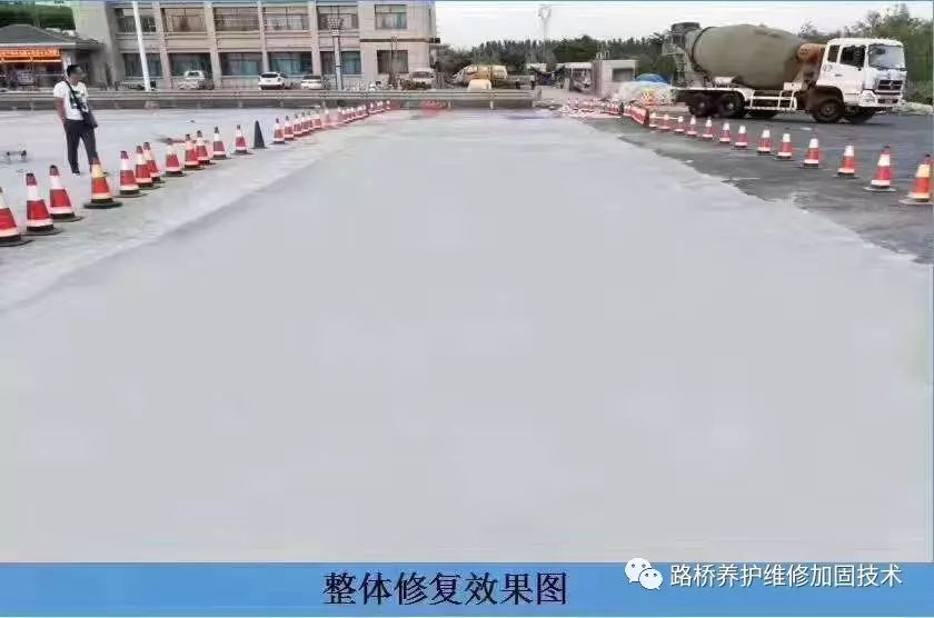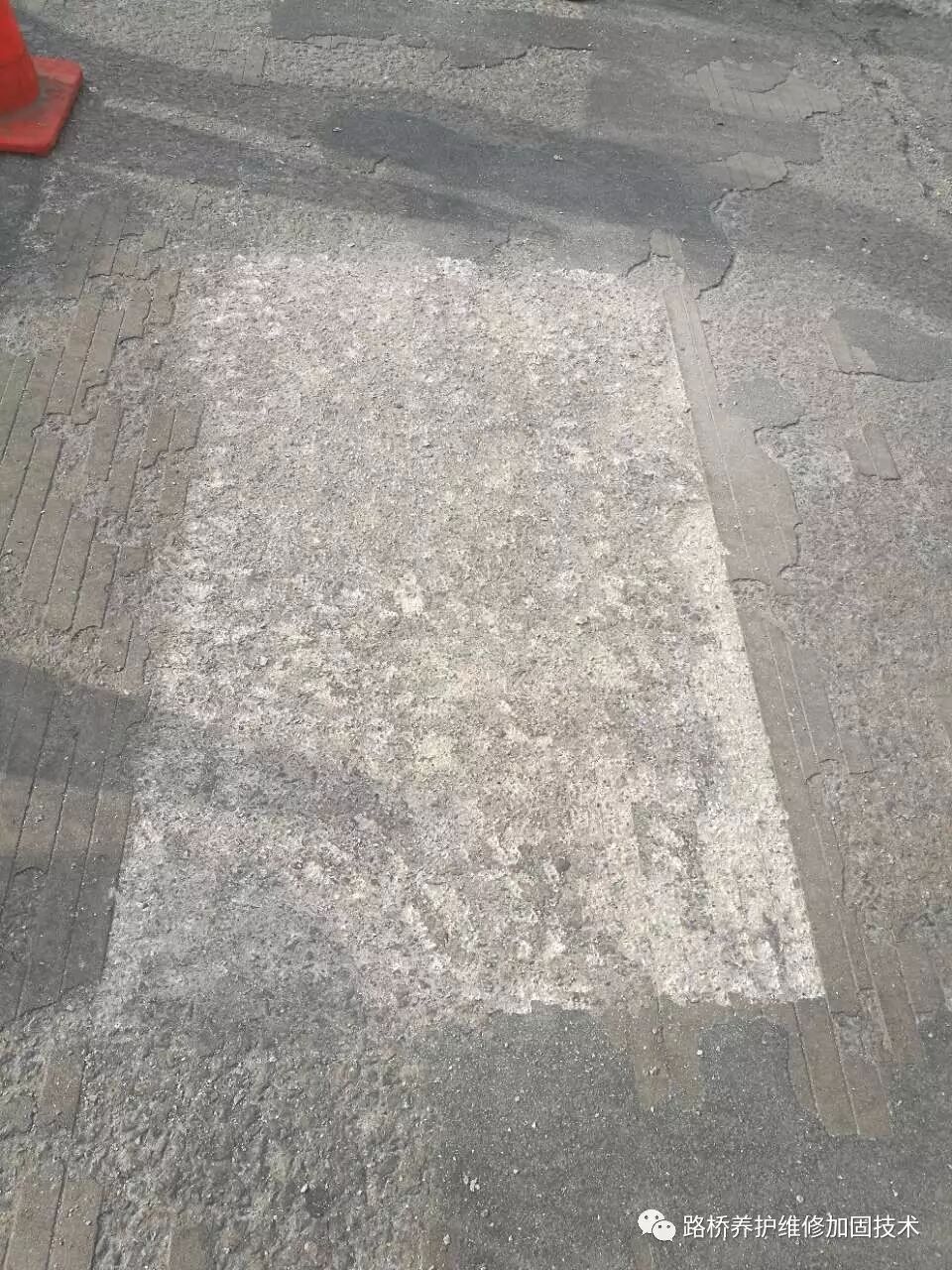 护砼TM一号混凝土修复材料,可进行3〜5 mm薄层施工,施工后可恢复路面原有的使用功能,并提高路面的抗盐、抗渗、抗磨、抗冻耐久性能。该技术施工方便快捷,同时具有修复层颜色可调,使最终的修复层颜色与原路面颜色相近、恢复通车时间短等特点。