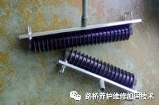 待铺设抹平好护砼一号后,等待15分钟即可采用齿状压纹轮拖滚进行表面压纹。