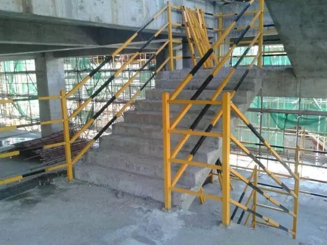 11、基坑、屋面、楼板、阳台、卸料平台等临边防护不严,防护栏未涂刷红白相间警戒色的。