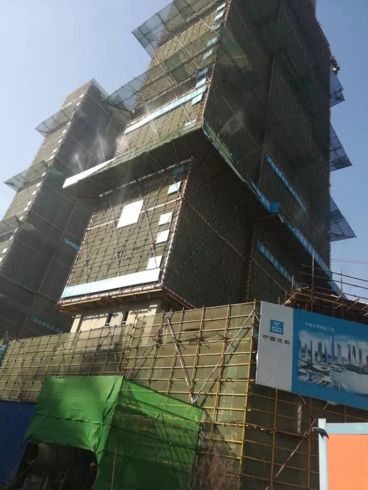 随后,督察组发现5号楼附近堆放了大量的抹面胶浆。督察组告知施工方,必须用覆盖物对这些胶浆进行覆盖,以免产生灰尘。2号楼施工产生了部分灰尘,但并未进行喷淋作业,在督察组指导下,施工方开始进行喷淋作业。