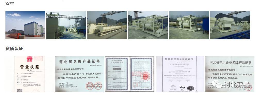 河北双星公司的主导产品以MP系列立轴行星式搅拌机, JS系列砼搅拌机,PLD系列配料机及HZS25、HZS35、HZS50、HZS60、HZS75、HZS90、HZS120、HZS180、HZS240等混凝土搅拌站(楼)设备和WCZ系列稳定土搅和站设备为主导产品。