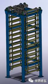 13.高达十二层的升降板机以及与之相匹配的十二层子母窑车,使车间空间得到了充分的利用。升降板机,采用了著名品牌的减速机,使运行稳定可靠。