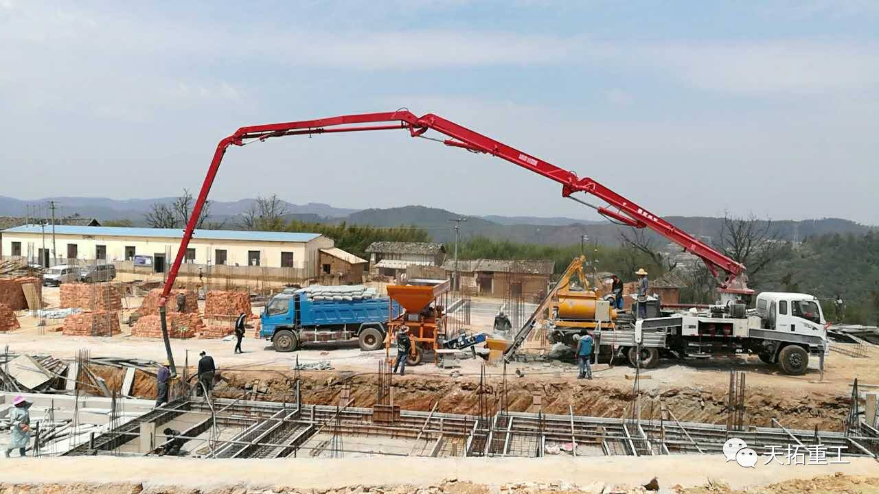 天拓重工28米混凝土搅拌泵车每小时理论泵送40立方混凝土,但由于JS500强制搅拌机每小时搅拌混凝土15-20方量的限制,导致整车的工作效率下降60-70%。