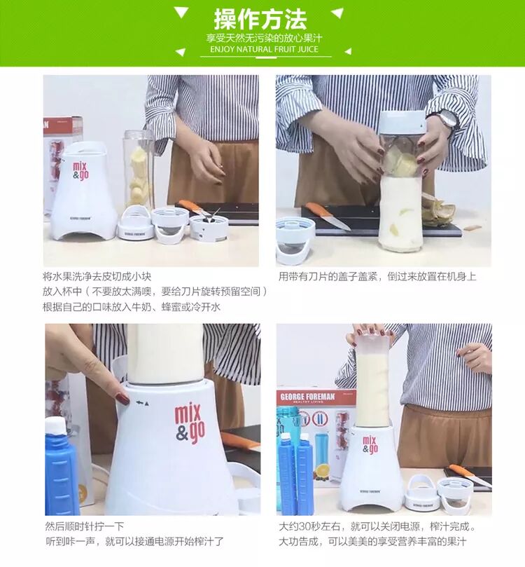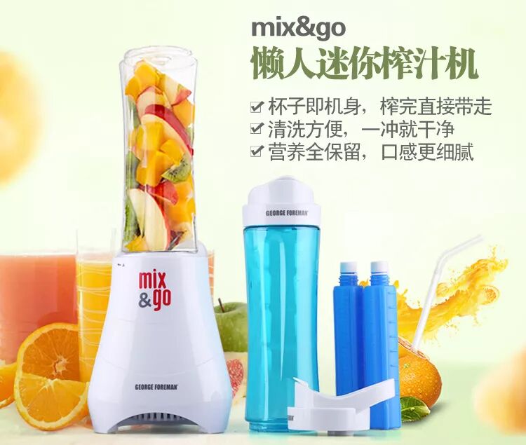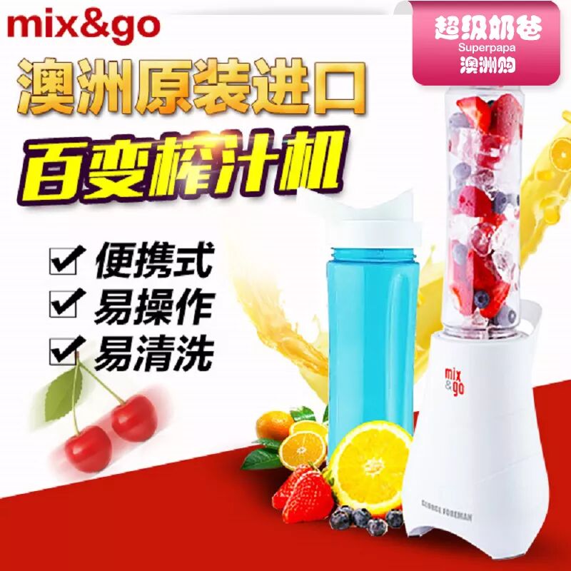 【奶爸澳洲新品尝鲜】预售,澳洲Mix&Go 懒人榨汁机,家庭必备小家电,多种功能集一身:便携式婴儿辅食、电动搅拌冰沙、果汁机,适合减肥/健身的你。 做奶昔,做米糊;打水果,打代餐粉,全部可以。更适合没时间做早餐的上班族,只要将任何水果切块,放进搅拌机,盖上盖子!直接可以喝、可以带出去,或者出门旅行,方便清洗,清水冲洗3秒完成。自配杯子两个,冷冻棒两根。现在新品尝鲜价239元一个包邮,一周内到货。