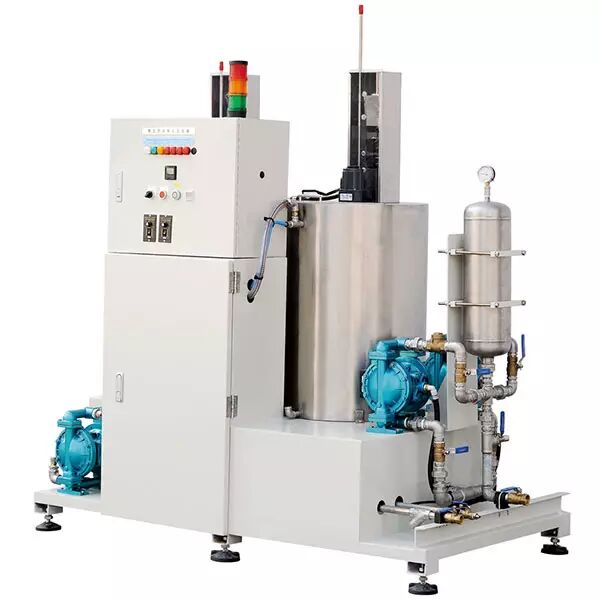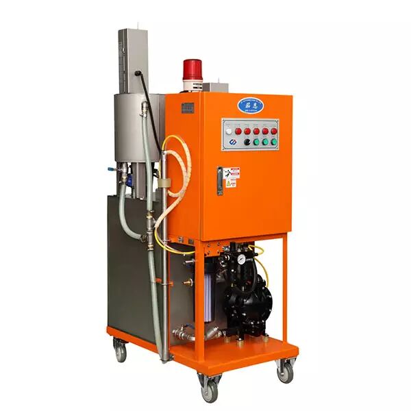特点 本机械设备适用于大型压铸机的混合压送装置。以电子式的数值控制设定,稀释精度非常的高质量,稀释倍率可以从1:30~1:300的稀释范围内自由的设定。效能说明: 1.原液、稀释液桶均使用浮球式的控制,降低误动作的机率并确保液位的可靠性。 2.可以提供离型剂(脱磨剂)稀释精度非常高的品质管理。另外稀释率的数值设定调整简单,只要在控制面板上操作修改数据即可完成所需的稀释比例。 3.泵浦的出口侧设置压力待感器并于控制面板上作显示,压力过低时会自动发出警报,及时排除异常,确保生产的持续性。