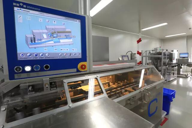 固体制剂车间共有四条包装线。其中UHLMANN高速双铝泡罩包装线由德国乌尔曼公司制造,主要包装恩替卡韦分散片(润众)、阿德福韦酯胶囊(名正)等,不仅外形美观,更能保证产品质量。CAM高速铝塑泡罩包装线由意大利CAM公司制造,包括高速铝塑泡罩包装线和高速铝塑铝泡罩包装线各一条。
