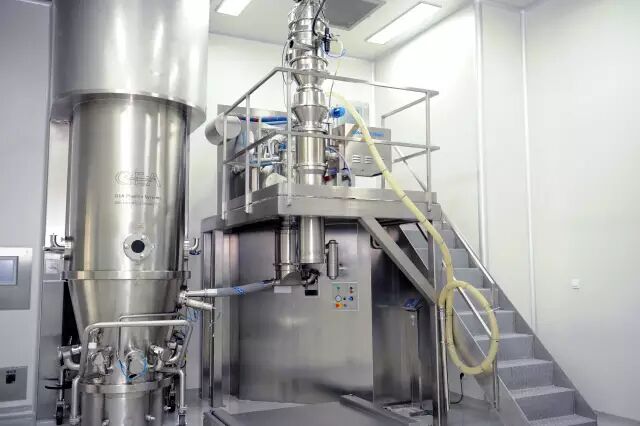 固体制剂车间有两套湿法制粒及流化床系统,分别从德国GLATT公司和GEA公司引进。这两套系统均采用全密闭物料输送技术,保证物料在生产过程中不泄露,使整个生产环境干净整洁。