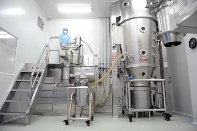 正大天晴固体制剂车间相继引进了德国GLATT公司和GEA公司的两套湿法制粒流化床系统、混合机、物料密闭转运输送系统、料斗自动清洗系统、德国FETTE公司自动高速压片机、德国BOSCH公司胶囊自动充填机、德国UHLMANN高速包装线等,解决了传统固体制剂车间由于物料在生产、运输过程中暴露在敞开空间,造成粉尘扩散、污染或交叉污染等问题。