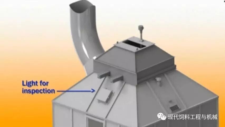 冷却器顶部设计了照明,便于生产时观察冷却箱体内物料的工况。