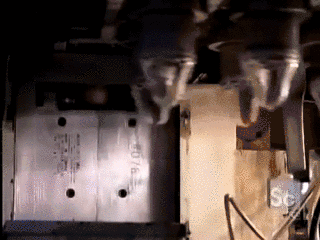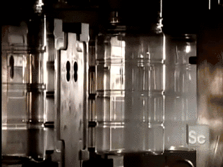 接着机器会将利用高压,将塑料液压到模具上。这一步,称为塑料的预成型。
