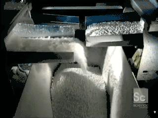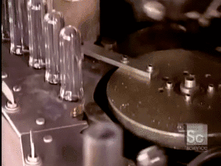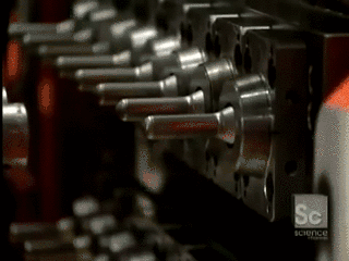 从混合机中出来的PET被运往塑料注射机中,注射管内的温度会被加热到315摄氏度,使得PET变成浓稠的塑料液体。