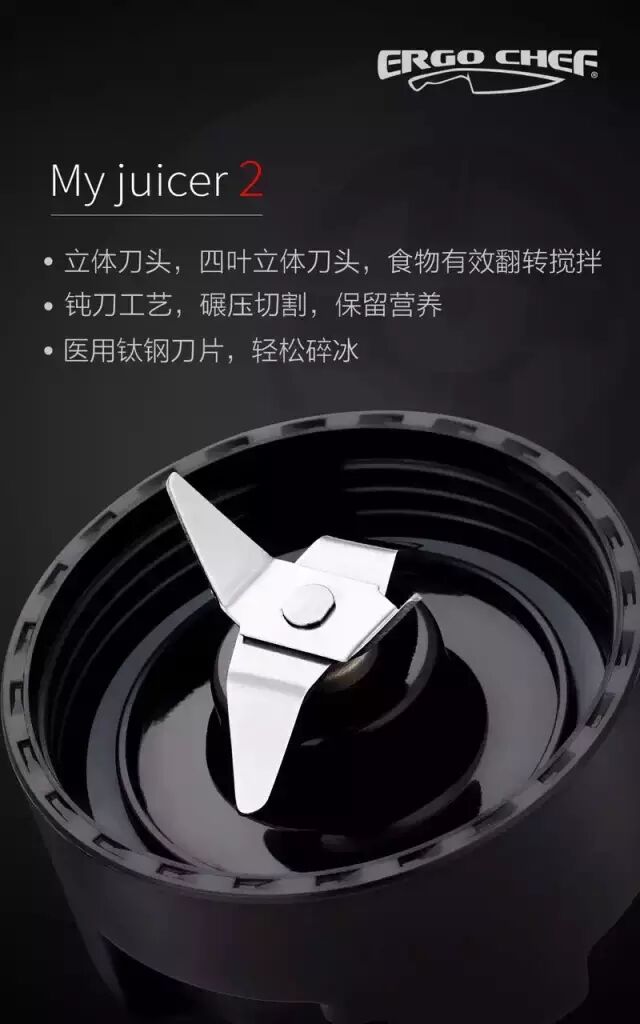 传统的榨汁机是采用果肉粉碎的方式取汁,而ERGO CHEF原汁机采用的是超高速研磨原理,,对果蔬进行超高速的均匀压榨,ERGO CHEF原汁机采用四叶立体刀头,食物有效翻转搅拌,使用钝刀工艺,进行碾压切割,保留营养。超高速的旋转刀头,产生极低的热量,能够避免出汁过程中果汁与金属接触发生氧化的问题。因此原汁机能够较好的保留十五中所含的营养成分,榨出的果汁维生素含量较高,能保持水果的味道口感浓厚,原汁原味,就像刚切开的水果一样,纯天然。除了能够很好保留水果中的营养成分,ERGO CHEF原汁机还有一个特点就是出汁率更高,一般同样的水果在ERGO CHEF原汁机超高速研磨原理下所打出来的果汁要更多,而且果汁更均匀更浓厚。但并非所有的水果都有很高的出汁率,这个根据水果的不同,出汁率也是有所区别的。ERGO CHEF原汁机还具有非常出色的研磨效果,在超高速的到头研磨下3秒就可把果肉分离,果汁内的沉淀物较少,合起来的口感纯厚细腻,放置一段时间后,ERGO CHEF原汁机榨出来的果汁,没有明显的分层,而且起来更接近水果的原色,颜色较深,浓度更高。通过口感也能感受到ERGO CHEF原汁机与普通榨汁机的区别:ERGO CHEF原汁机榨出来的果汁口感较为浓厚,维持着比较好的果味,而且自配随身携带的杯盖,秒变随身杯。![]()