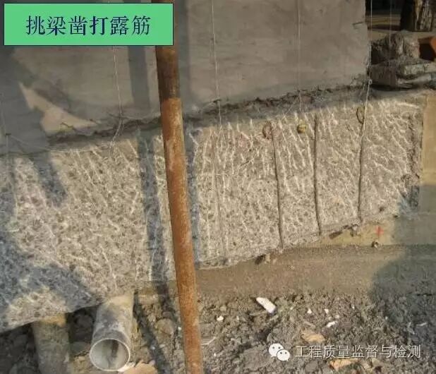 短肢墙(柱)纵向筋浇筑混凝土后未及时扶正、校核,预拌混凝土流动性过大,从而使模板的侧压力过大,梁侧模板支撑不牢或间距过大,爆模钢筋位移,剔打钢筋外露。