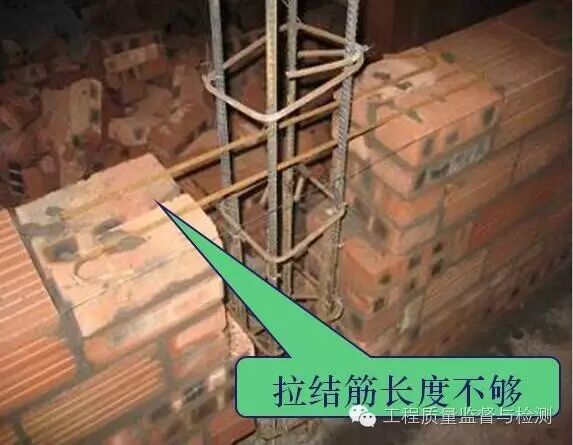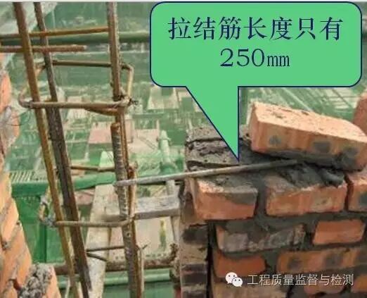 砌筑前未技术交底,拉结筋下料长度不够、偷工减料。