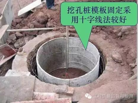 桩护壁模板应按每安装一节在桩口架十字用线坠复核、调校。