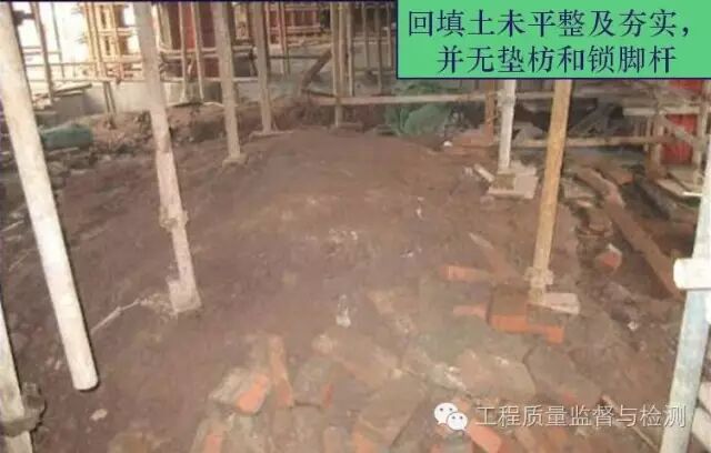 ① 梁板支撑支承在基土面上时,基土未平整夯实。