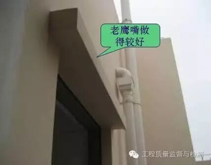 阴阳角处搭接方式,墙面突出物周围套割,滴水线(槽)、窗台、窗眉、窗套、流水坡等施工工艺不正确。