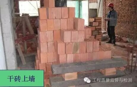 原因:管理不到位 危害性:干砖墙影响砂浆与砖的粘结力,造成吸水较快,砂浆保水性差,和易性很差,砌筑时铺摊和挤浆困难,砂浆强度减低。