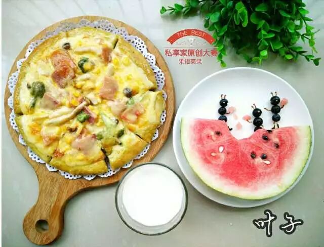 好了,一款美味营养的什锦披萨就做好了。学习了你也为家人折腾一个试试吧